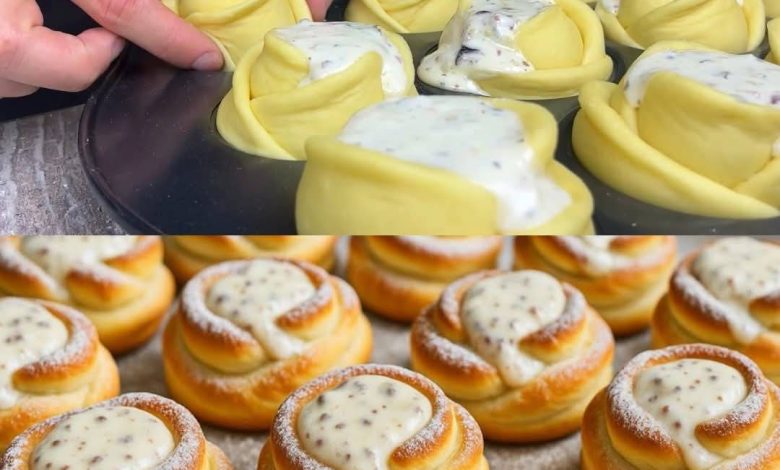 There’s something magical about freshly baked bread that fills the kitchen with warmth and comfort. These Cream-Filled Sweet Bread Rolls are not only soft and pillowy but also beautifully shaped like roses, making them as elegant as they are delicious. Filled with a creamy custard-like mixture and baked until golden, they are the perfect balance of light bread and rich filling. Whether enjoyed for breakfast, brunch, or as an afternoon treat with coffee or tea, these rolls are guaranteed to impress both with their flavor and their stunning appearance. They are a true bakery-style delight you can make right at home.