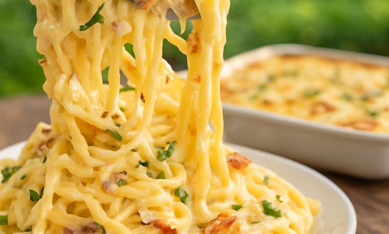 If you’re looking for the ultimate comfort food, Creamy Baked Spaghetti Alfredo is a dish that delivers both indulgence and heartwarming satisfaction. Combining tender strands of spaghetti with a rich, velvety Alfredo sauce, crispy bits of bacon, and a cheesy baked topping, this recipe transforms a simple pasta dinner into a restaurant-worthy experience. The baking step not only melds all the flavors together but also creates a lightly golden, irresistible layer of cheese on top. Perfect for family dinners, gatherings with friends, or even as a make-ahead meal, this pasta bake is guaranteed to become a household favorite.