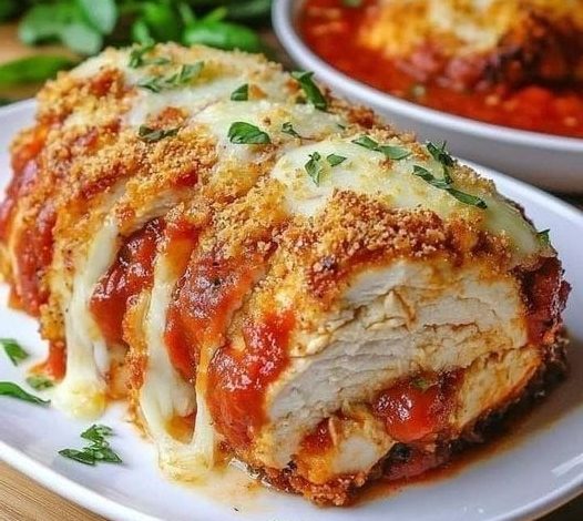 1. Add sauce: Spoon some marinara sauce over each chicken roll-up.