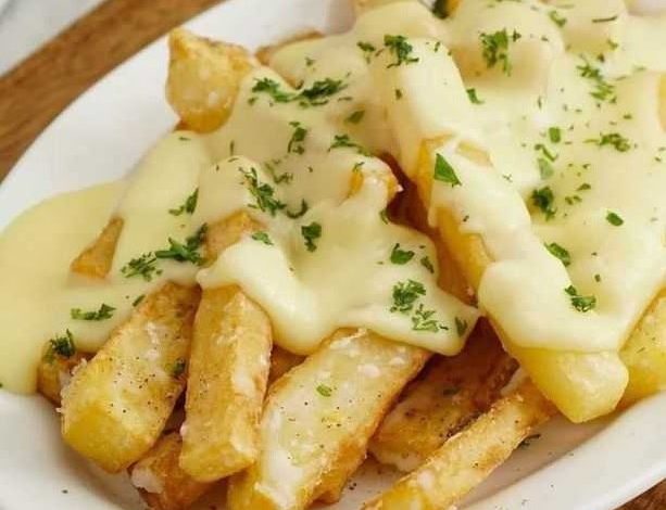 Enjoy your homemade creamy cheese sauce with fries! It’s a deliciously indulgent treat that’s perfect for snacking or as a side dish.