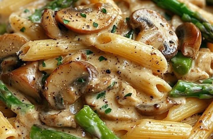 Indulge in a comforting and flavorful dish with this Creamy Garlic Mushroom & Asparagus Pasta. This delightful recipe brings together al dente penne pasta, tender mushrooms, and fresh asparagus in a luscious garlic-infused cream sauce. Perfect for a cozy dinner, this dish is rich, satisfying, and packed with flavors that will tantalize your taste buds. Whether you’re preparing a quick weeknight meal or a special dinner, this pasta recipe is sure to impress!