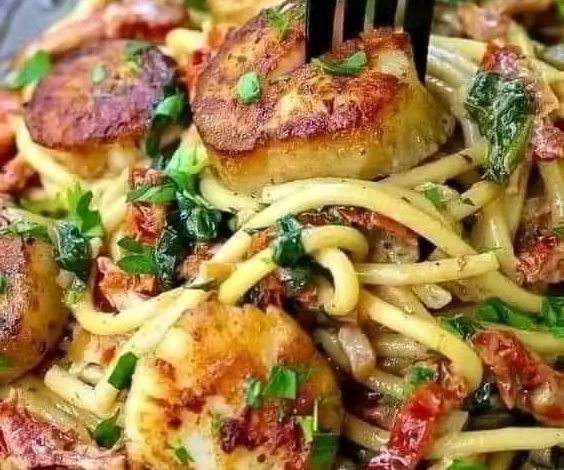 Creamy Garlic Pasta with Pan-Seared Scallops