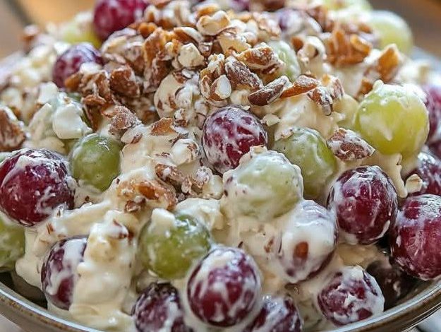 The Creamy Grape Salad with Pecans is more than just a simple fruit salad—it’s a decadent yet refreshing dish that blends creamy, sweet, and nutty elements into a harmonious bite. Its vibrant colors make it visually appealing, while the combination of textures keeps every spoonful interesting. Whether enjoyed as a light dessert or a special side, it’s a recipe worth adding to your culinary collection. With minimal effort and maximum flavor, this salad is proof that the simplest recipes can leave the biggest impression.