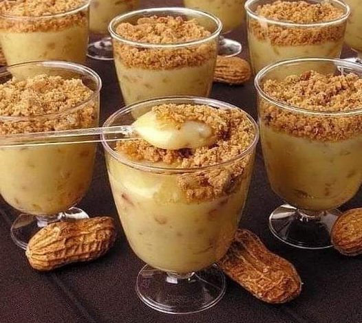 Enjoy your delicious and creamy peanut dessert with a crumb topping!