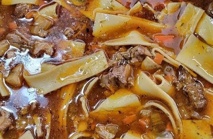 • Add diced potatoes and noodles to the pot. Simmer for an additional 15-20 minutes, or until the potatoes and noodles are cooked.