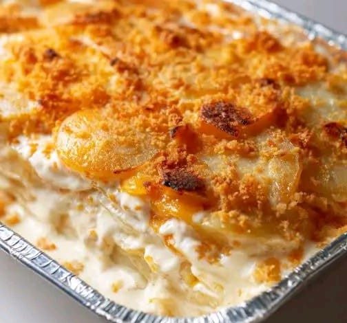 Creamy Scalloped Potatoes with Crunchy Topping – A Golden, Cheesy Classic