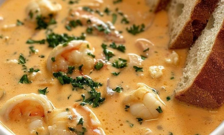 • Ladle the bisque into bowls and garnish with chopped fresh parsley and whole shrimp.