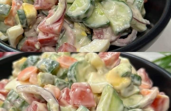 - Gently toss the ingredients until the vegetables are well-coated with the creamy dressing.