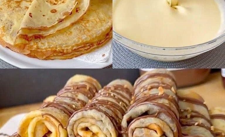 with flour and egg. Add milk and water little by little and mix. Add salt and spread; Whisk until smooth.