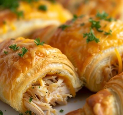 Improve the nutritional value by mixing finely chopped spinach or peppers into the chicken filling.For a crispier exterior, top the buttered croissants with grated Parmesan before baking.