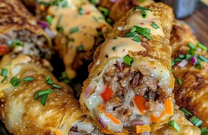 Egg rolls are one of the most beloved appetizers across the globe, known for their golden crispy shells and savory, flavorful fillings. What makes them so irresistible is the balance between crunch and tenderness, where the outside remains perfectly fried and flaky while the inside bursts with juicy meat and fresh vegetables. These crispy beef and vegetable egg rolls take the classic to the next level by combining ground beef, colorful vegetables, and a drizzle of creamy sauce that ties everything together. Ideal for family dinners, parties, or even as a snack, they’re versatile, delicious, and visually stunning.
