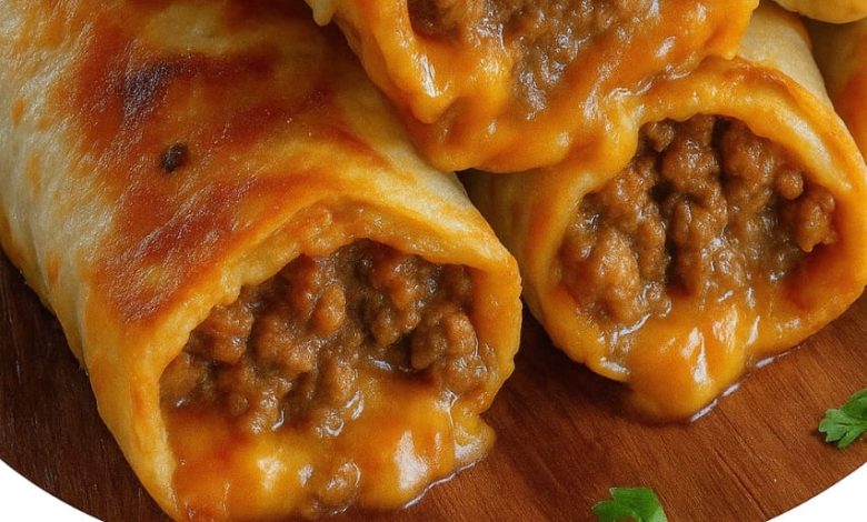 Lay out the flour tortillas. Place a generous scoop of the beef and cheese mixture in the center of each. Fold in the sides, then roll up tightly like a burrito, tucking in the ends.ADVERTISEMENT