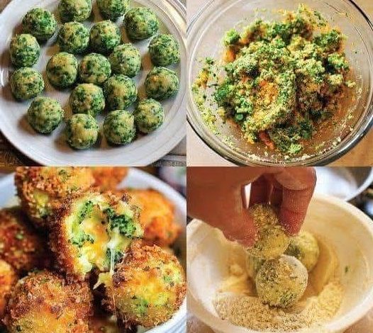 5. Cook: You can either bake or fry the broccoli cheese balls. For baking, place them on a greased baking sheet and bake at 400°F (200°C) for 20-25 minutes or until golden and crispy. For frying, heat oil in a pan and fry the balls until they are golden all around.