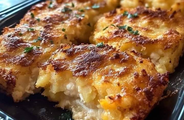 Golden, crispy on the outside and irresistibly creamy on the inside — this Crispy Cheesy Potato & Chicken Bake is comfort food at its finest. With layers of tender shredded potatoes, savory chicken, and gooey cheese all baked to perfection, this dish is a cozy, satisfying crowd-pleaser. Perfect for a family dinner or potluck gathering, it’s the kind of recipe that disappears fast and leaves everyone asking for seconds.