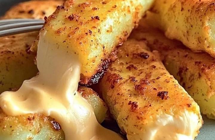 - Fry the potato sticks for about 3-4 minutes on each side, until they are golden brown and crispy. The cheese should be melted and gooey inside.
