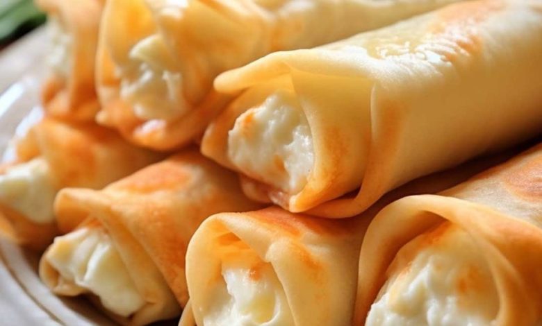Place 2 tablespoons of the cream cheese mixture on the bottom half of a spring roll.