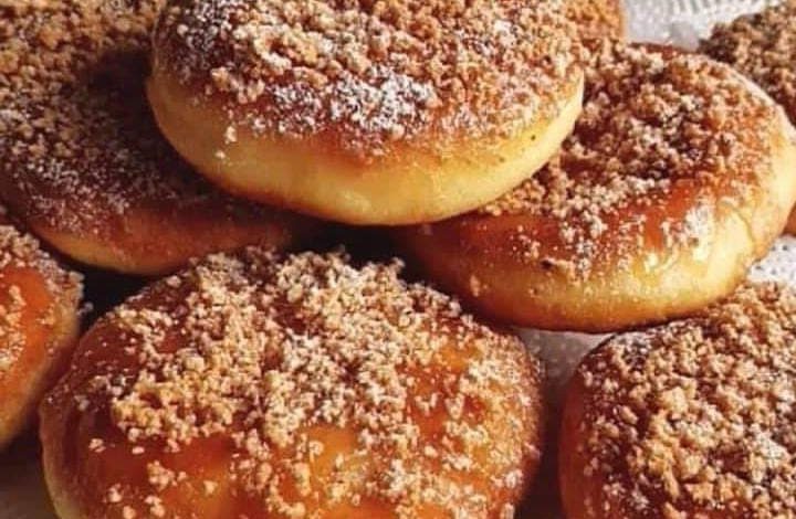 • While the donuts are still warm, dip the tops into the glaze and then into the crumb topping. Let the glaze set before serving.