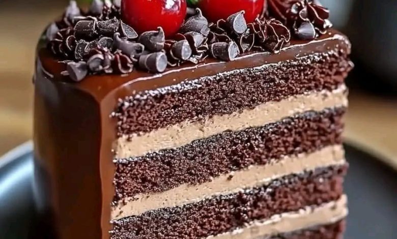 Indulge in the rich, velvety goodness of this Decadent Chocolate Layer Cake, a dessert designed for true chocolate lovers! 🍫✨ With four moist chocolate cake layers, luscious chocolate cream filling, and a glossy chocolate ganache topping, this cake is the ultimate showstopper for special occasions. Topped with chocolate shavings and fresh cherries, every bite offers a perfect balance of sweetness, richness, and indulgence. Whether it’s a birthday, an anniversary, or a weekend treat, this heavenly chocolate cake is bound to impress!
