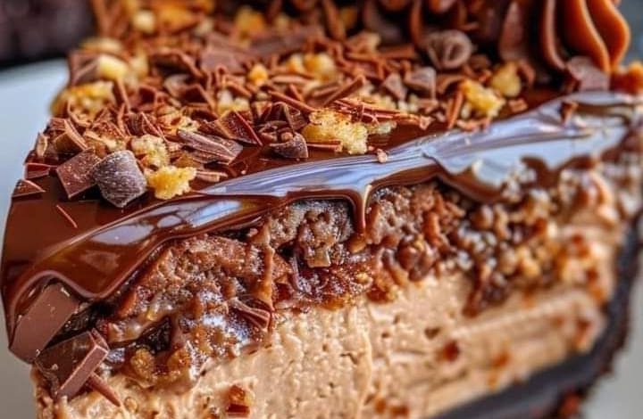 This cake is rich, creamy, and deeply chocolaty, with a smooth mousse texture that contrasts beautifully with the crunchy crust and glossy ganache. Enjoy your indulgent dessert!