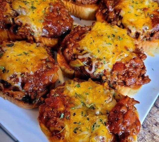 Pour the meat sauce over the garlic toast and then top with mozzarella. Serve hot