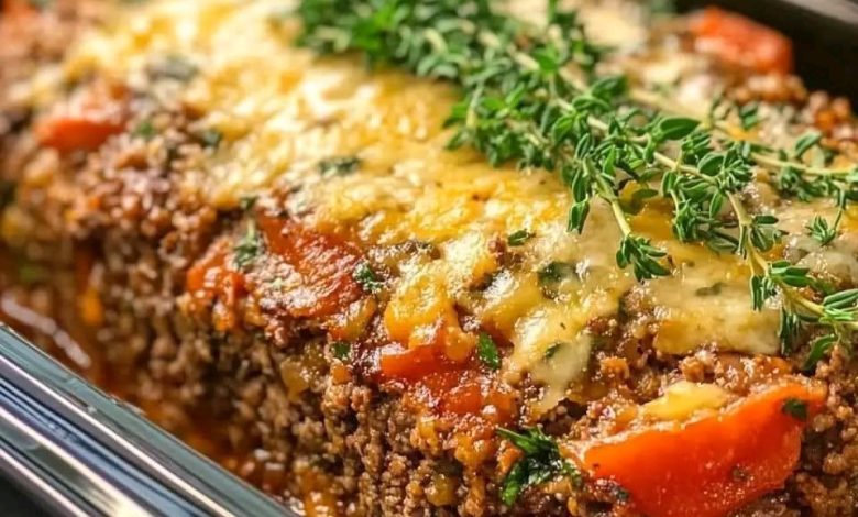 • Layer the cooked beef and vegetable mixture over the sauce.