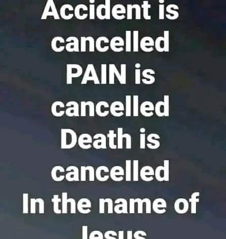 In a world where uncertainty looms at every corner, the power of faith remains a cornerstone for many believers. Among these affirmations of faith, there is a profound declaration that resonates deeply within the Christian community: “Accident is cancelled, PAIN is cancelled, Death is cancelled, In the name of Jesus.”In a world where uncertainty looms at every corner, the power of faith remains a cornerstone for many believers. Among these affirmations of faith, there is a profound declaration that resonates deeply within the Christian community: “Accident is cancelled, PAIN is cancelled, Death is cancelled, In the name of Jesus.”