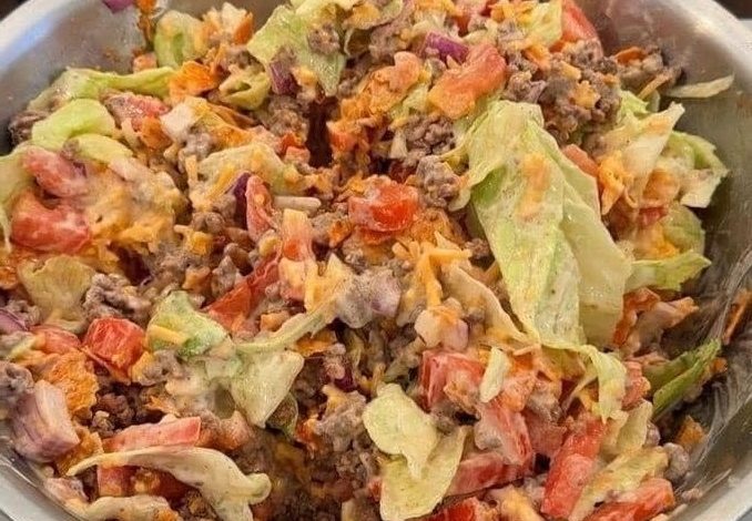 This Doritos Taco Salad recipe is a testament to the magic of combining simple ingredients to create something wonderfully flavorful and satisfying. It is a dish that invites creativity and can be adapted to different tastes and preferences. Whether served in a big bowl at home or in individual Doritos bags at a party, it’s sure to be a conversation starter and a recipe you’ll come back to again and again. Enjoy the crunch, spice, and delicious flavor combination that make this