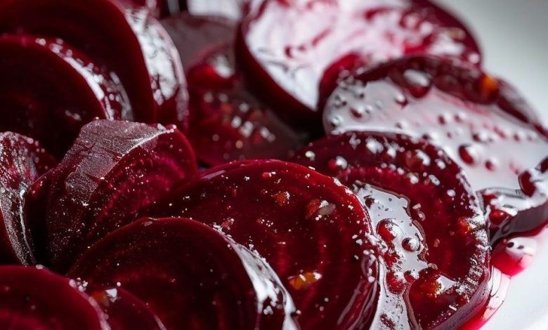 Begin by draining the beets, reserving 1/4 cup of juice. If necessary, cut whole beets into 1/4-inch pieces.
