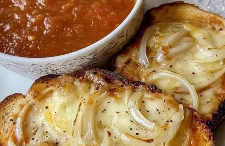- Ingredients: 4 slices of crusty bread, 1 large onion (sliced), 1 cup shredded cheese (such as mozzarella or Swiss), olive oil, salt, and pepper.