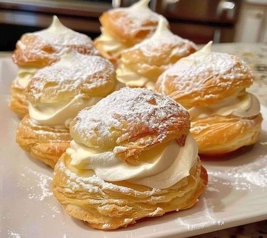 Food cut in half and filled with pipe or mint. Sprinkle with powdered sugar or pour melted chocolate.