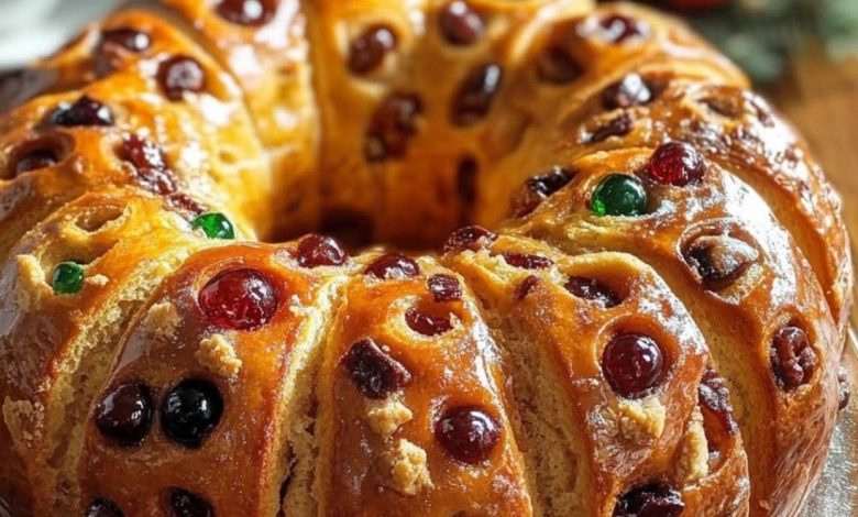 “Festive Holiday Fruitcake with Candied Citrus and Spiced Rum Glaze”