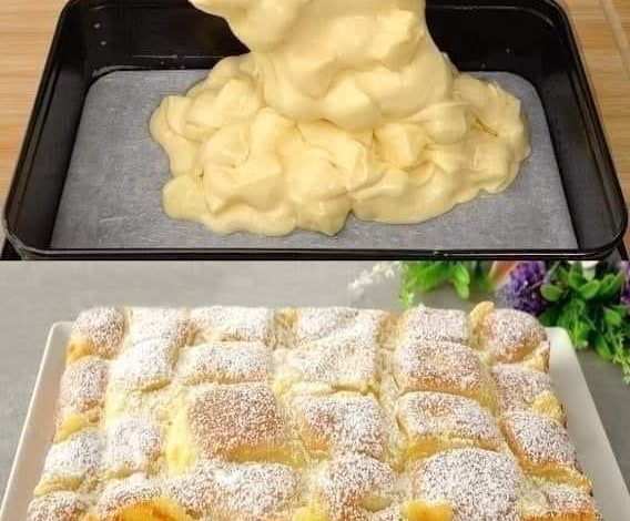 Reduce speed to medium and gradually add sugar mixture. Add the egg yolks and beat until a soft dough forms. Add vanilla extract. Carefully fold in the egg whites in three portions and stir until there are no more white streaks. Pour the dough into the prepared pan and smooth the surface.Bake for 25 to 30 minutes or until the top of the cake is lightly golden.