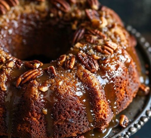 Allow the cake to cool completely before cutting. This waiting time allows the caramelized pecan topping to reach its gooey perfection.