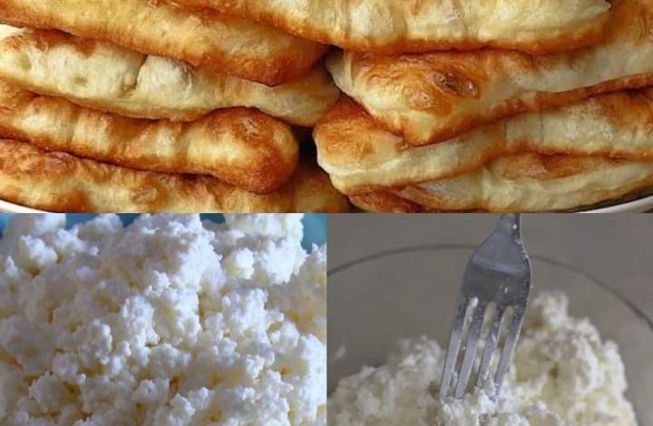 Enjoy this delightful combination of crispy fried dough and creamy, tangy fresh cheese as a perfect snack or appetizer!
