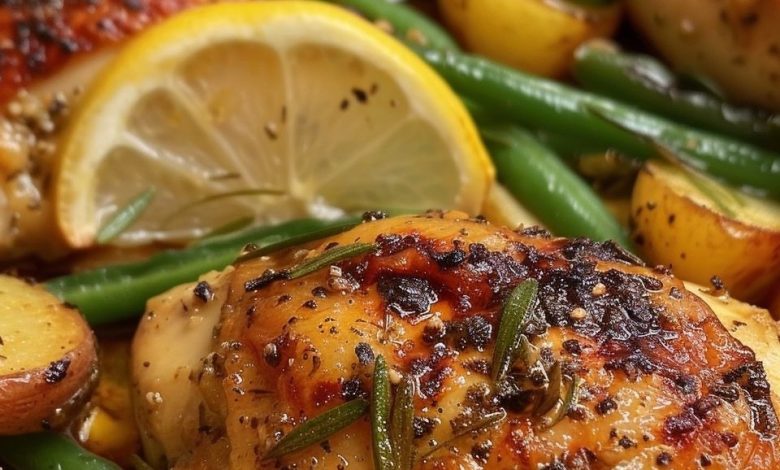 Baked Lemon Garlic Chicken, Red Potatoes and Green Beans