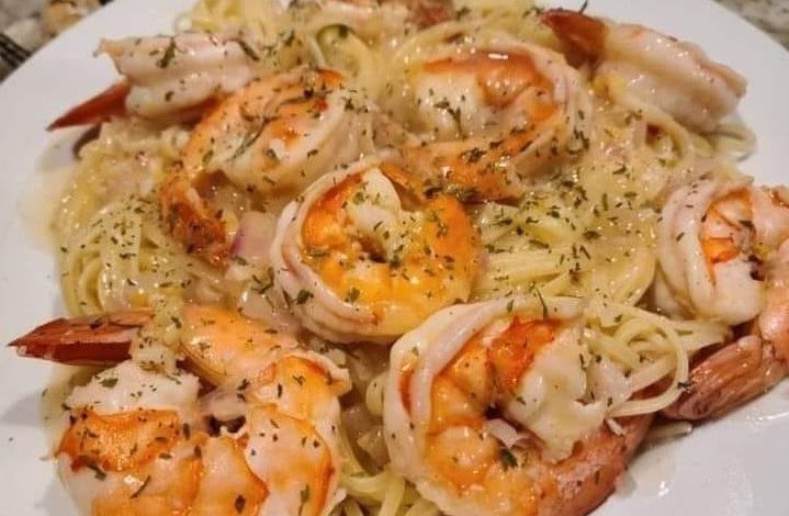 Melt butter and olive oil in a pan over medium-high heat. Season the shrimp with salt, pepper and garlic powder, fry the shrimp for 2 minutes on each side and remove.