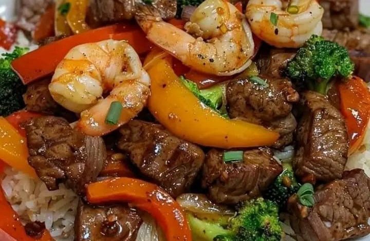 Garlic Soy Shrimp and Beef Stir-Fry with Colorful Vegetables