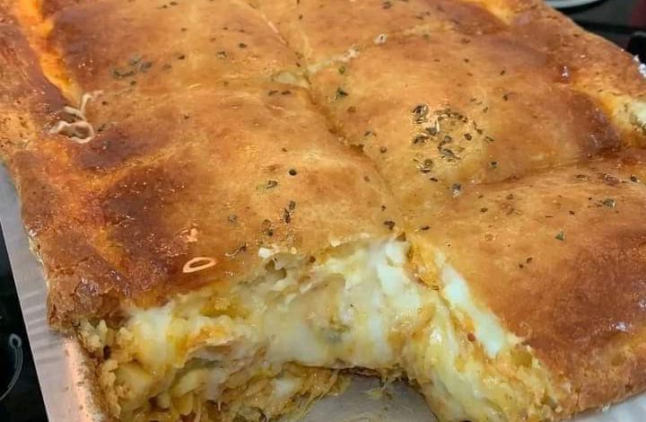- Place the dough over the filling, pressing the edges to seal. Trim any excess dough.