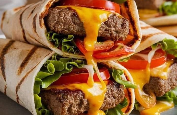 Divide the cooked meat evenly over the tortillas and place in the middle.