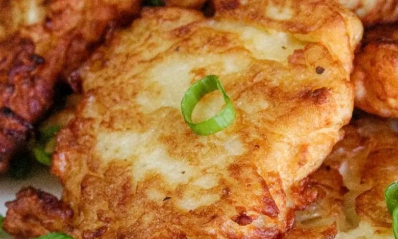 Scoop a small portion of the potato mixture and flatten it into a pancake shape.