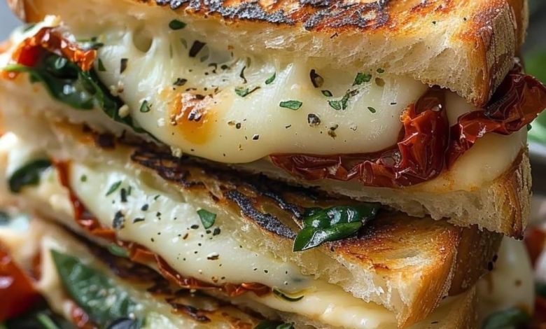 This grilled cheese sandwich with sun-dried tomatoes, spinach and ricotta is an easy-to-prepare, healthy and delicious meal. Gourmet ingredients make traditional cheeses a special treat for any day of the week. Enjoy your delicious creations!
