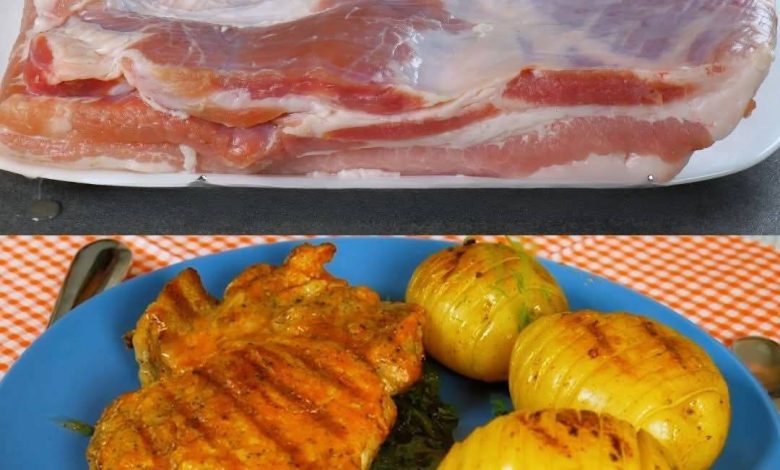 Looking for a hearty, flavorful, and visually impressive meal that’s easy to prepare? This Grilled Pork Chops with Hasselback Potatoes recipe is the perfect combination of juicy, well-seasoned meat and crispy, buttery potatoes. The pork chops are marinated in a blend of spices, ensuring maximum tenderness and rich flavor, while the Hasselback potatoes bring an elegant touch with their crispy edges and soft interior. Whether you’re preparing a special dinner or a weekend feast, this dish will leave everyone satisfied and craving more! 🥩🥔🔥