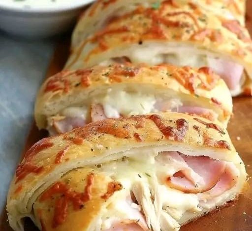 This ham and cheese stromboli is a versatile dish that’s perfect for gatherings, lunch, or dinner. Enjoy the warm, gooey goodness of melted cheese and savory ham wrapped in a crispy, golden crust!