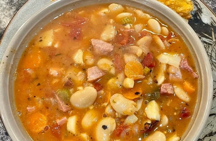 “Hearty White Bean and Ham Soup”