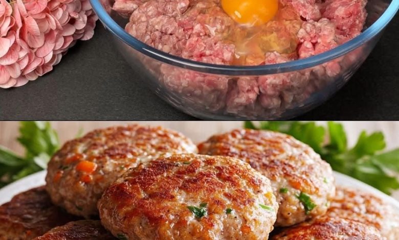 - In a large bowl, combine the ground meat, eggs, grated onion, minced garlic, breadcrumbs, and grated carrot (if using).