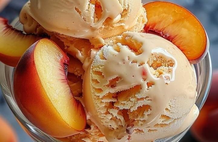 Enjoy your homemade peach ice cream, a perfect blend of creamy texture and sweet, juicy peaches! This delightful treat is sure to be a hit with family and friends.