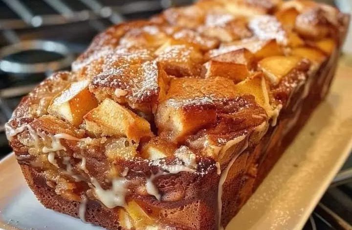 Apple Cinnamon Bread Pudding Loaf – Soft, Spiced, and Glazed to Perfection