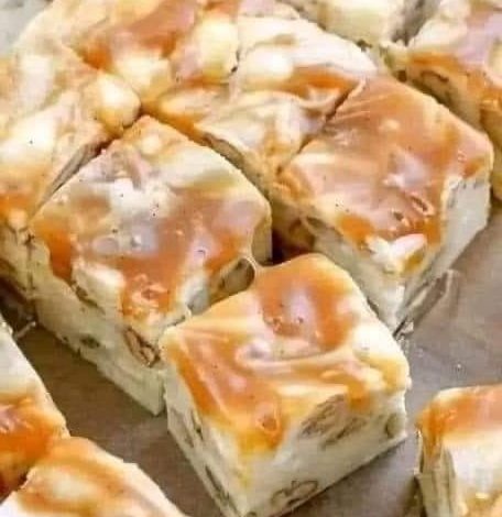 – Creamy white chocolate fudge filled with pecans and coated in caramel can be a great way to get the holiday feeling. 97 Heat the Caramel Sauce