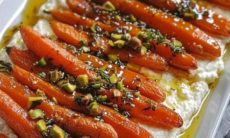 Honey-Glazed Roasted Carrots with Whipped Feta and Pistachio Garnish