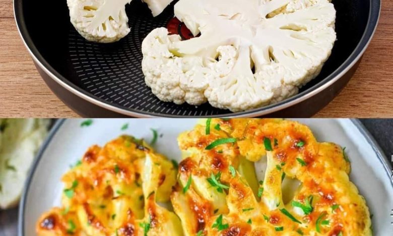 Cauliflower steaks are a delicious and healthy alternative to traditional meat steaks. These steaks are roasted to perfection and topped with a cheesy crust, making them a flavorful and satisfying dish. The image above shows beautifully roasted cauliflower steaks with a golden, cheesy topping. Here’s how you can make these delightful cauliflower steaks at home.